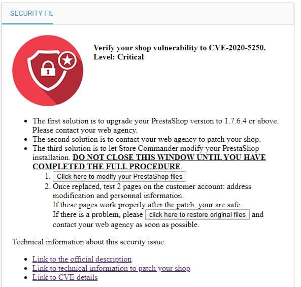 - Scanning your shop regularly allows you to check all the security elements and not only this flaw, to make sure that the shop is secure.