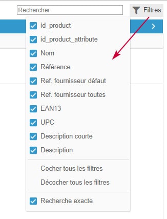 Store Commander propose une recherche simple et une recherche sur mesure pour votre boutique.